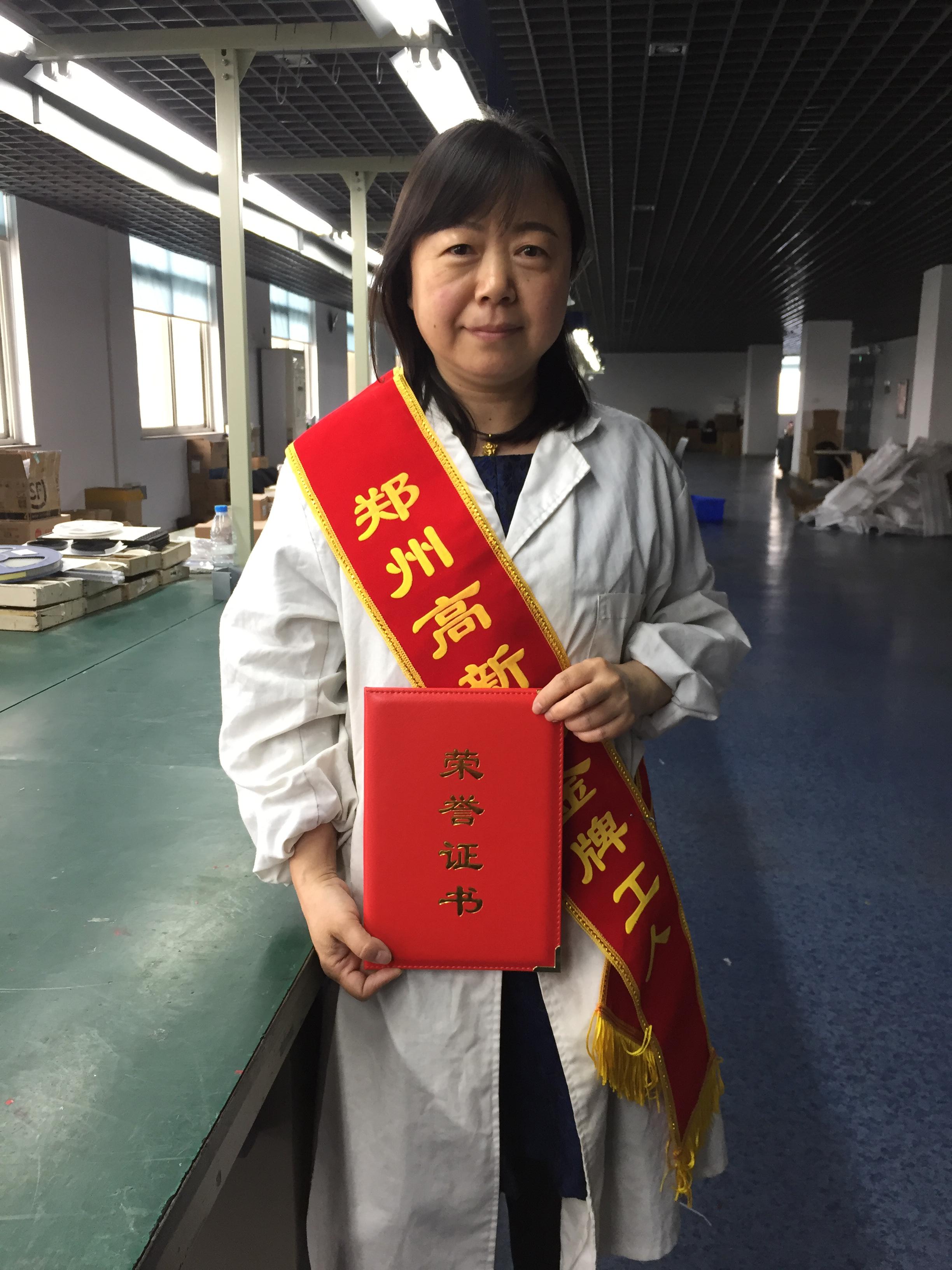2018年4月25日上午九点,郑州高新区“奋斗是幸福的”迎五一、五四表彰汇演活动在管委会二楼礼堂举行,我公司生产部员工褚瑞东获得表彰。褚瑞东同志自进入公司以来,已在无线电装接岗位工作32年,她爱岗敬业、技艺精湛、工作中以身作则,凭着脚踏实地、从小事做起的务实精神,从一开始学习基础的焊接,到成长为装配班班长,在平凡的岗位上不断探索、默默奉献。